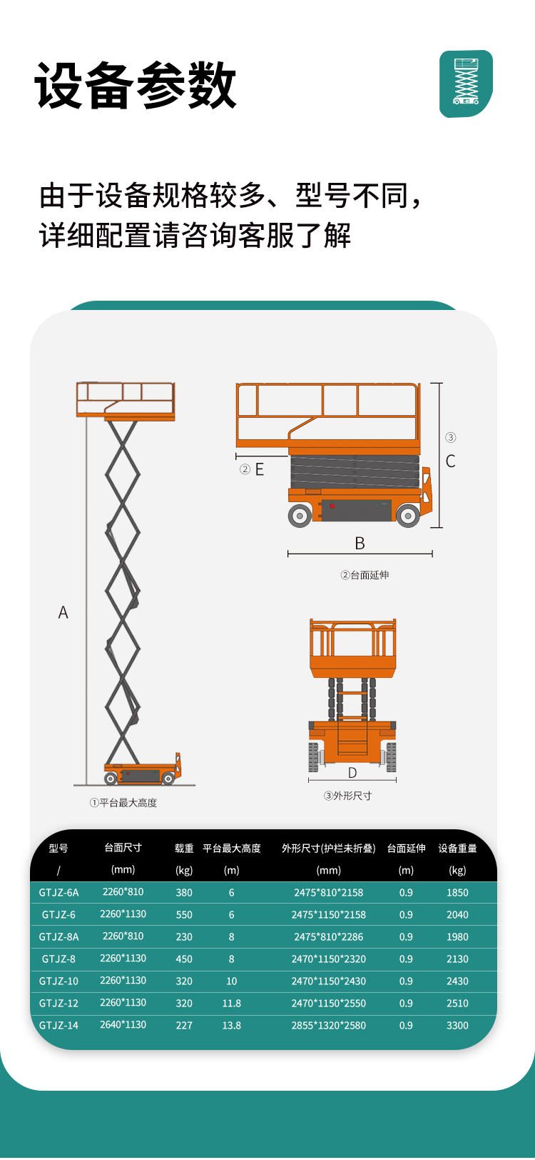 全自行式剪叉升降平臺(tái)性能參數(shù)